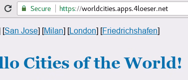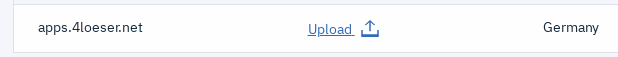 You all probably know that you can create so-called custom domains for your apps in IBM Cloud. Instead of making an app available at mygreatapp.mybluemix.net the app is reachable at myevengreaterapp.example.com. To get there, you would make your domain name known to IBM Cloud by following the instructions. In my case, I first created a new subdomain apps for 4loeser.net at my domain registrar. Then, I pointed the CNAME record to “secure.eu-de.bluemix.net”. And last, I added apps.4loeser.net as a domain to IBM Cloud to serve apps hosted in Germany:
