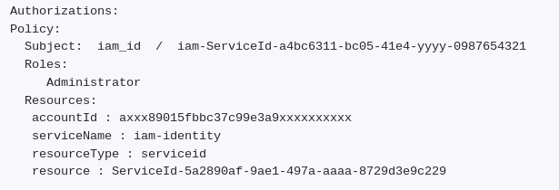 To grant access to a resource, an administrator can create a policy for a user or service ID and assign roles on that type of service and its instances. These policies are called authorizations. Roles are a set of service-specific privileges (security attributes). To simplify administration and easily grant the same privileges to users and service IDs, access groups can be used to bundle the authorizations. Thus, an access group combines users, service IDs, and access policies. Users can be part of several access groups.