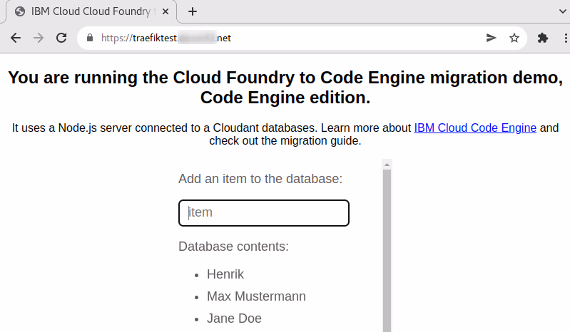 - For some of my apps I have deployed traefik proxy. You can run it in a Kubernetes cluster or even in Cloud Foundry. I share the instructions and sample configuration files a deployment in this GitHub repository. It makes use of the built-in domain management and lets traefik perform the proxying and TLS management. The screenshot below shows this sample migration app served on a custom domain.